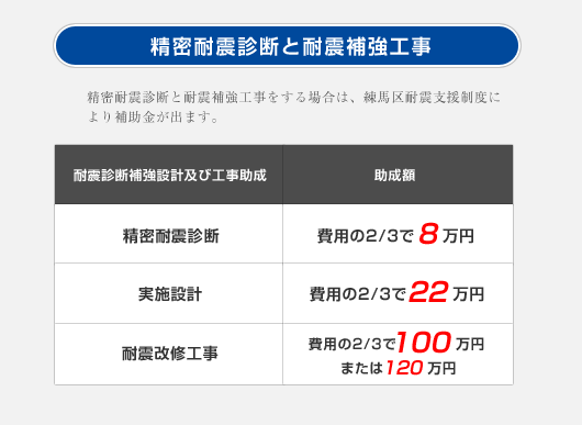 助成金は建築物の種類により異なりますが、耐震診断で100〜200万円。改修工事で1000万円〜6000万円の助成金が支給されます。(それぞれ助成率が決まっています。)面積に関する制限など他の条件がございます。詳細はお問合せください。